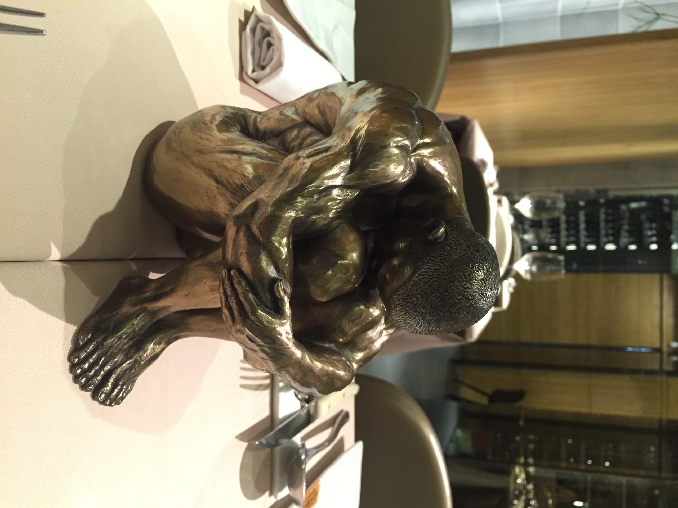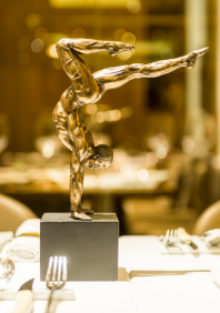 Mientras tanto, sobre cada mesa, esperan al comensal pequeñas esculturas hiperrealistas de XX que muestran gimnastas en equilibrio o meditando.