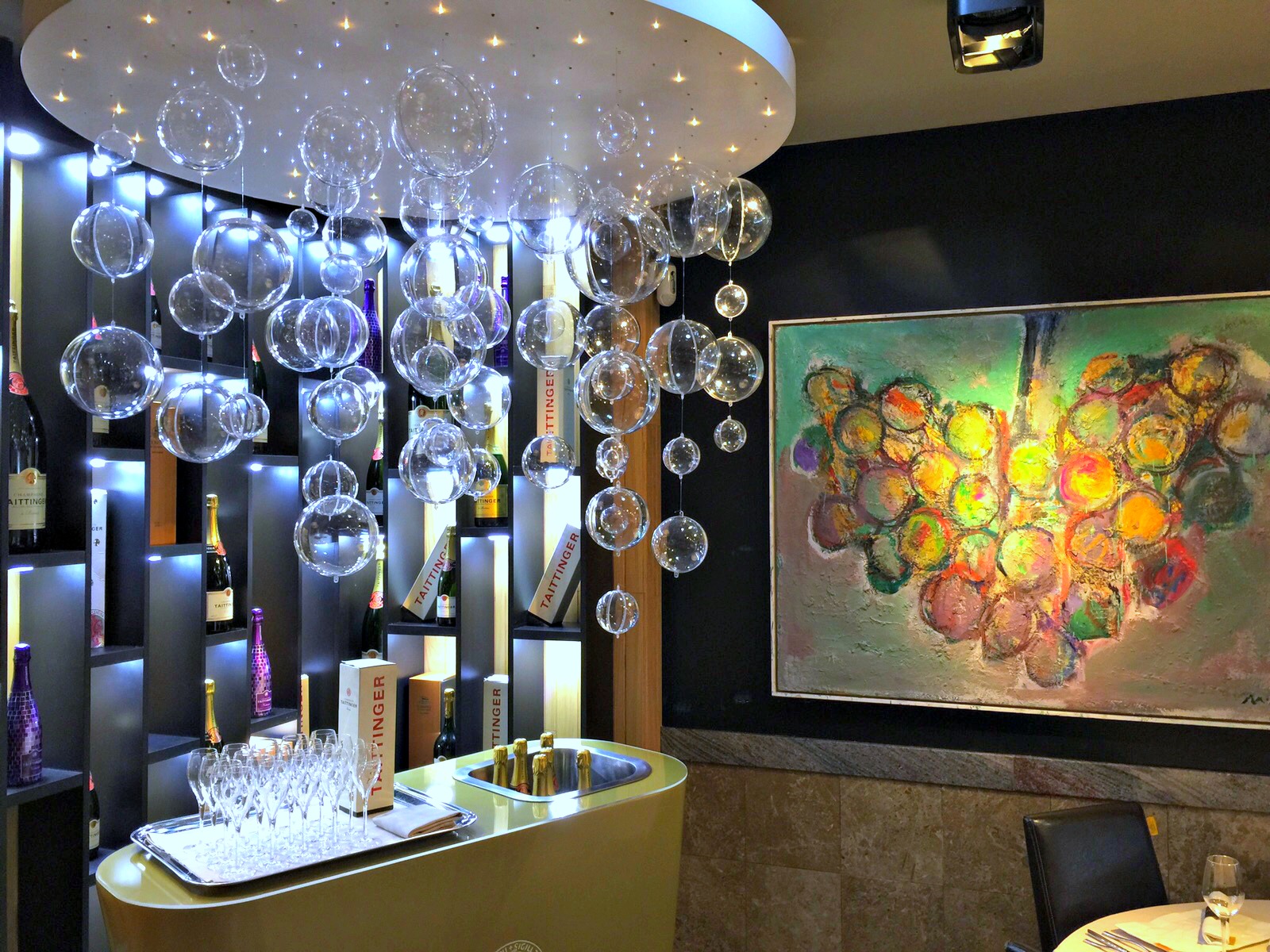 Nuestro sumiller, Manu Simôes, se enamoró de ellas en Reïms (Francia) y quiso que esa imagen inspiradora recibiese al comensal al llegar a La Taverna.